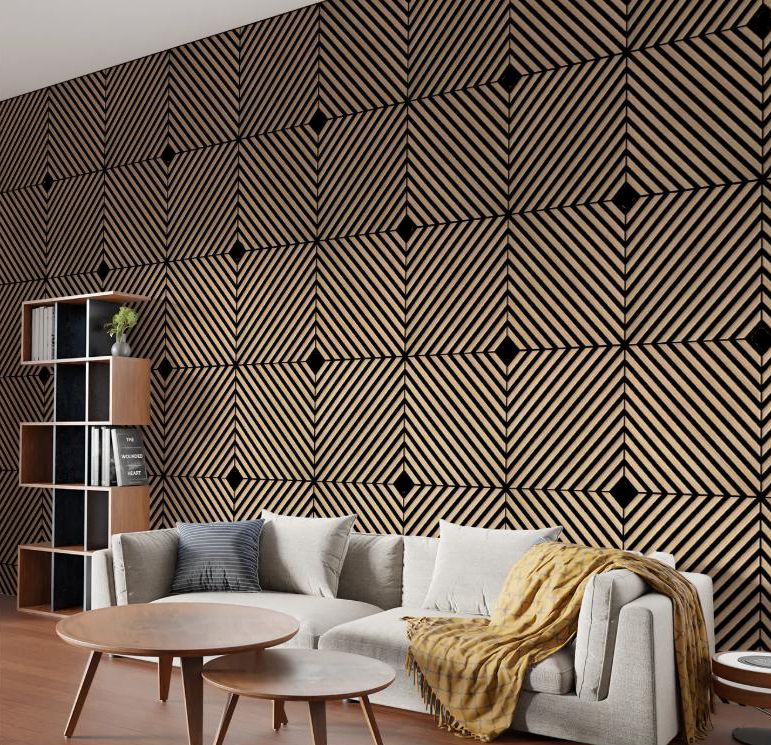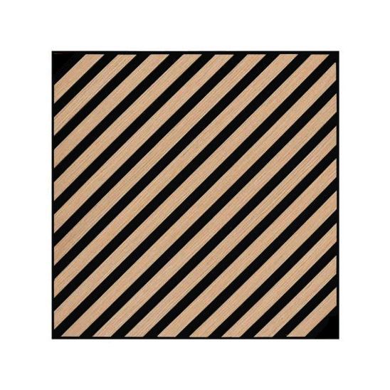 Τα ηχομονωτικά πάνελ τοίχου Wall Line Acoustic Diagonal με μέγεθος Y60cm-Φ60cm αποτελούνται ηχομονωτική τσόχα και από ανθεκτικά υλικά . Χάρη στη μαύρη βάση από τσόχα πάχους 9 mm που χρησιμοποιείται ως βάση των ακουστικών πλαισίων, επιτυγχάνεται υψηλή ηχομόνωση . Το επίπεδο ηχητικής αντίστασης είναι κατηγορίας Β, που καθορίζεται από το ευρωπαϊκό πρότυπο EN ISO: 11654:1997 με συντελεστή ηχοαπορρόφησης α=0,80;0,85. Το υλικό από το οποίο κατασκευάζονται τα προφίλ στο είναι MDF, το οποίο καλύπτεται με φύλλο φυσικού ξύλου 1mm. Στο ένα πάνελ υπάρχουν ελάσματα μεγέθους 27mm πλάτους και 12mm πάχους. Η απόσταση μεταξύ των ελασμάτων είναι 13 mm. Η συμπεριφορά του προϊόντος σε περίπτωση πυρκαγιάς ταξινομείται με επίπεδο ευφλεκτότητας Β – δύσκολο να καεί. Επίσης, τα πάνελ είναι φιλικά προς το περιβάλλον ή ακριβέστερα ακίνδυνα για το περιβάλλον και την ανθρωπότητα, αυτό το προϊόν διαθέτει πιστοποιητικό CARB-P2, το οποίο είναι υπεύθυνο για τα επίπεδα φορμαλδεΰδης - ένα αέριο επικίνδυνο για την αναπνοή και εκρηκτικό. Όσον αφορά τη τοποθέτηση , είναι εξαιρετικά εύκολη, υπάρχουν τρεις επιλογές τοποθέτησης - με σχάρα, με επιτοίχια τοποθέτηση με βίδες ή με κόλλα (π.χ. κόλλα "Liquid Nail"). Ο καθαρισμός συνιστάται να γίνεται με ηλεκτρική σκούπα ή στεγνό πανί. Η χρήση νερού μπορεί να διογκώσει το προϊόν MDF. Δεν είναι κατάλληλα για εγκατάσταση σε δωμάτια με υψηλή υγρασία.