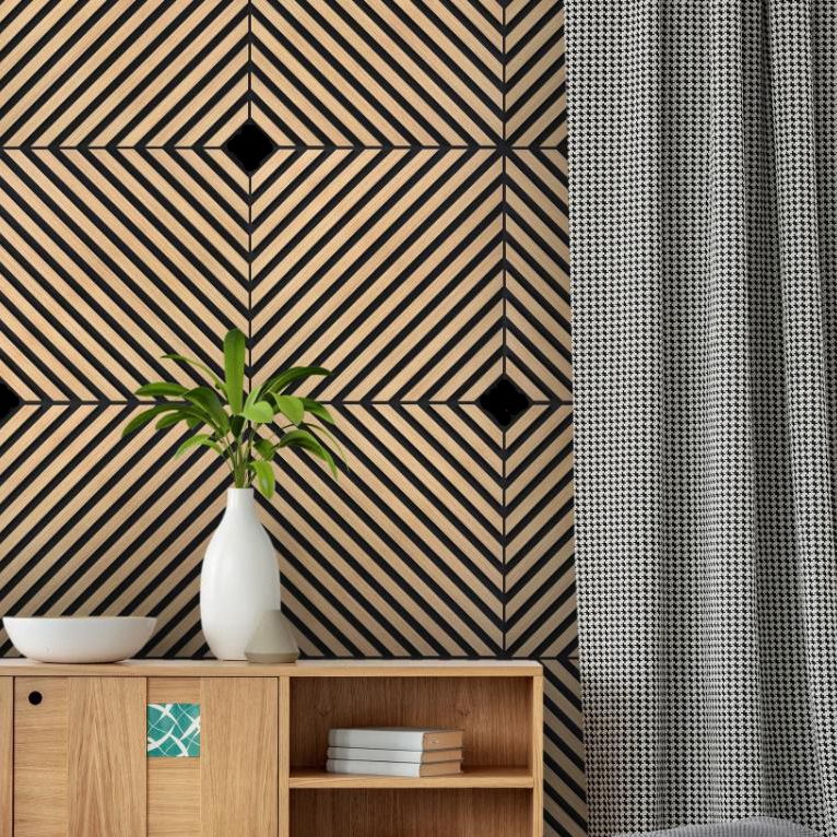 Τα ηχομονωτικά πάνελ τοίχου Wall Line Acoustic Diagonal με μέγεθος Y60cm-Φ60cm αποτελούνται ηχομονωτική τσόχα και από ανθεκτικά υλικά . Χάρη στη μαύρη βάση από τσόχα πάχους 9 mm που χρησιμοποιείται ως βάση των ακουστικών πλαισίων, επιτυγχάνεται υψηλή ηχομόνωση . Το επίπεδο ηχητικής αντίστασης είναι κατηγορίας Β, που καθορίζεται από το ευρωπαϊκό πρότυπο EN ISO: 11654:1997 με συντελεστή ηχοαπορρόφησης α=0,80;0,85. Το υλικό από το οποίο κατασκευάζονται τα προφίλ στο είναι MDF, το οποίο καλύπτεται με φύλλο φυσικού ξύλου 1mm. Στο ένα πάνελ υπάρχουν ελάσματα μεγέθους 27mm πλάτους και 12mm πάχους. Η απόσταση μεταξύ των ελασμάτων είναι 13 mm. Η συμπεριφορά του προϊόντος σε περίπτωση πυρκαγιάς ταξινομείται με επίπεδο ευφλεκτότητας Β – δύσκολο να καεί. Επίσης, τα πάνελ είναι φιλικά προς το περιβάλλον ή ακριβέστερα ακίνδυνα για το περιβάλλον και την ανθρωπότητα, αυτό το προϊόν διαθέτει πιστοποιητικό CARB-P2, το οποίο είναι υπεύθυνο για τα επίπεδα φορμαλδεΰδης - ένα αέριο επικίνδυνο για την αναπνοή και εκρηκτικό. Όσον αφορά τη τοποθέτηση , είναι εξαιρετικά εύκολη, υπάρχουν τρεις επιλογές τοποθέτησης - με σχάρα, με επιτοίχια τοποθέτηση με βίδες ή με κόλλα (π.χ. κόλλα "Liquid Nail"). Ο καθαρισμός συνιστάται να γίνεται με ηλεκτρική σκούπα ή στεγνό πανί. Η χρήση νερού μπορεί να διογκώσει το προϊόν MDF. Δεν είναι κατάλληλα για εγκατάσταση σε δωμάτια με υψηλή υγρασία.