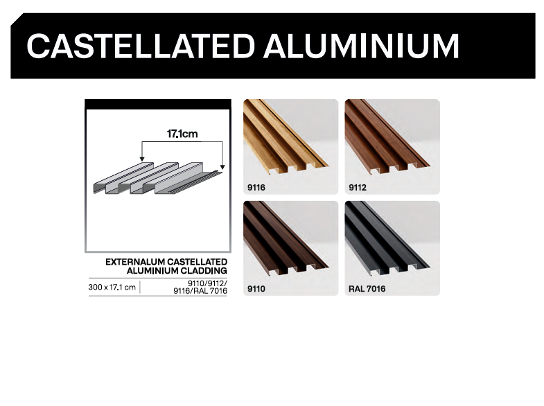 Το Castellated Aluminium Cladding της σειράς EXTERNALUM προσφέρει μια μοντέρνα, ανάγλυφη αισθητική που συνδυάζει την υψηλή σχεδίαση με την απόλυτη λειτουργικότητα.