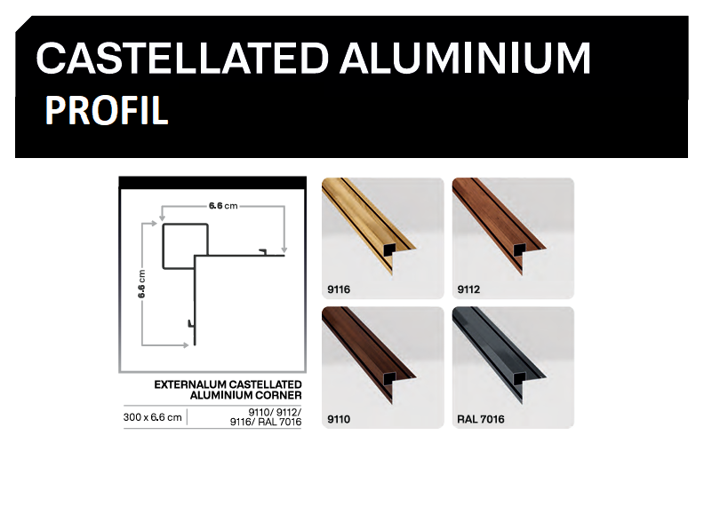 Το Castellated Aluminium Cladding της σειράς EXTERNALUM προσφέρει μια μοντέρνα, ανάγλυφη αισθητική που συνδυάζει την υψηλή σχεδίαση με την απόλυτη λειτουργικότητα.
