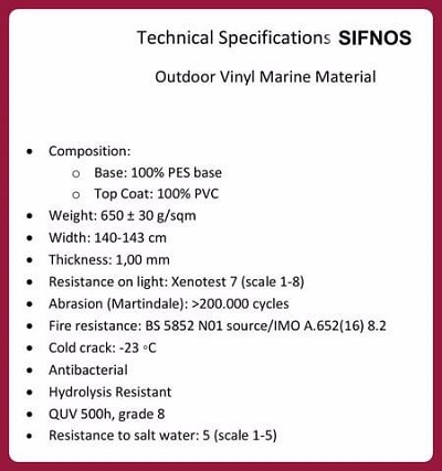 Η συλλογή περιλαμβάνει δερματίνες σε μεγάλη ποικιλία χρωμάτος , πιστοποιημένες με IMO , κατάλληλες για χρήση σε σκάφη με μεγάλη αντοχή στο φως και τη φθορά!